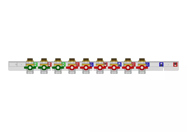 Anschlussschiene für Hydraulikmodul TWE-4L-HT, 3x Trinkwasser und 6x Heizung