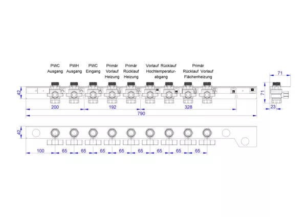 strawa Friwara WM-AS12-1-KH9,BxHxT: 790 x 71 x 71 mm, Anschlussschiene für Hydraulikmodul TWE-4L-HT, 3x Trinkwasser und 6x Heizung