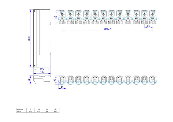 strawa FE-Friwara WM-VVD-LogiX-H-EGO 9 Hkr,BxHxT: 747 x 350 x 53 mm, Vorverdrahtung Heizen, bestehend aus EasySwitch 230 V Klemmleiste + EGO-Regelantriebe 230 V