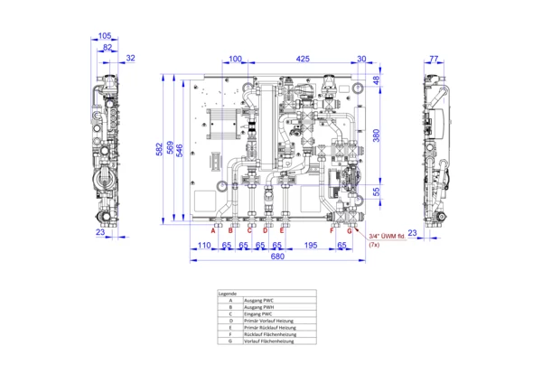 strawa Friwara WM-TWE-FBR-L1-CU -GB1,5,BxHxT: 680 x 590 x 105 mm, für Trinkwassererwärmung, Festwertregelung für Flächenheizung, kupfergelöteter PWÜ Leistungstufe 1, Grundblech 1,5