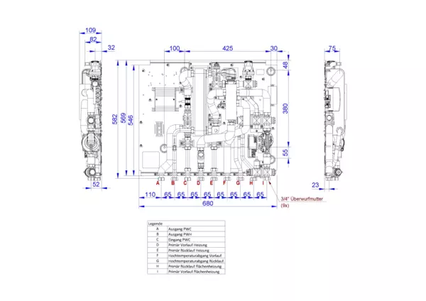 strawa Friwara WM-TWE-FBR-HT-L2-VA-D -GB1,5,BxHxT: 680 x 590 x 105 mm, für Trinkwassererwärmung, Festwertregelung für Flächenheizung, HT-Abgang, edelstahlgelöteter PWÜ Leistungstufe 2, Dämmung, Grundblech 1,5