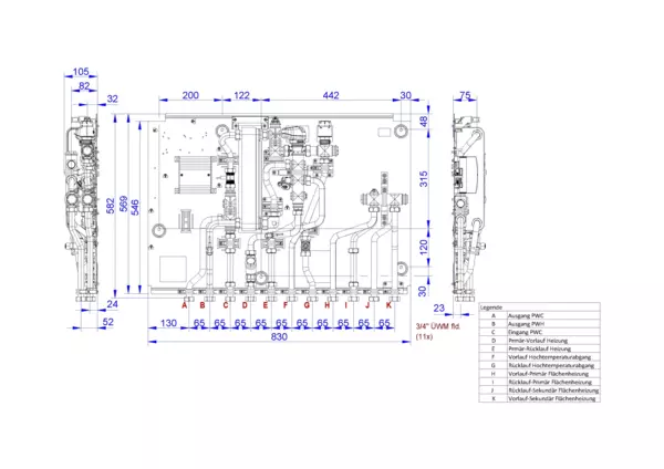 Warmwasser + Flächenheizung im 4 Leitersystem + HT-Abgang