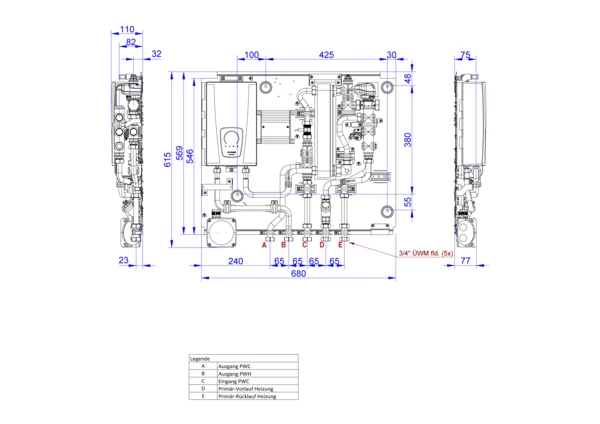 strawa Friwara WM-TWE-L2-CU-HY2 -GB1,5,BxHxT: 680 x 615 x 111 mm, für Trinkwassererwärmung, kupfergelöteter PWÜ Leistungstufe 2, elektrischer Durchlauferhitzer bis 21 kW, Grundblech 1,5