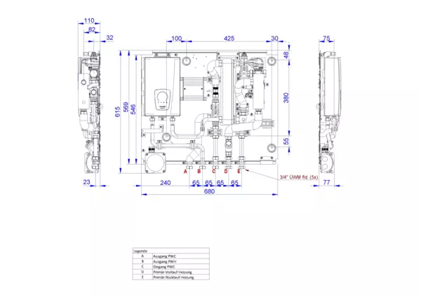 strawa Friwara WM-TWE-L2-VA-HY2-D -GB1,5,BxHxT: 680 x 615 x 111 mm, für Trinkwassererwärmung, edelstahlgelöteter PWÜ Leistungstufe 2, elektrischer Durchlauferhitzer bis 21 kW, Dämmung, Grundblech 1,5