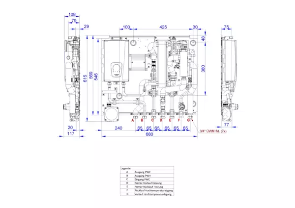 strawa Friwara WM-TWE-HT-RTBL2-VA-HY0-D -GB1,5,BxHxT: 680 x 615 x 111 mm, für Trinkwassererwärmung mit HT-Abgang, Rücklauftemperaturbegrenzer, edelstahlgelöteter PWÜ Leistungstufe 2, elektrischer Durchlauferhitzer bis 7 kW, Dämmung, Grundblech 1,5