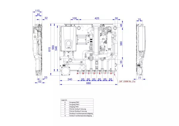 strawa Friwara WM-TWE-FB-L1-VA-HY2-D -GB1,5,BxHxT: 680 x 615 x 111 mm, für Trinkwassererwärmung mit Flächenheizung, edelstahlgelöteter PWÜ Leistungstufe 1, elektrischer Durchlauferhitzer bis 21 kW, Dämmung, Grundblech 1,5