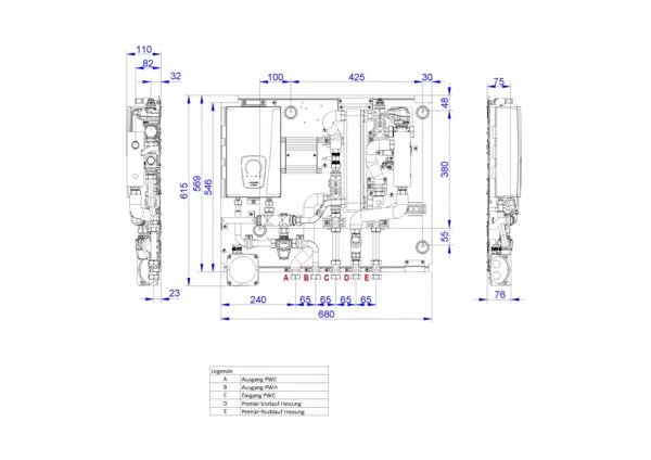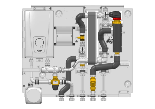 strawa Friwara WM-TWE-L2-CU-HY1-BY-D -GB1,5,BxHxT: 680 x 615 x 111 mm, für Trinkwassererwärmung, kupfergelöteter PWÜ Leistungstufe 2, elektrischer Durchlauferhitzer bis 13,5 kW, mit Mischventil, Dämmung, Grundblech 1,5