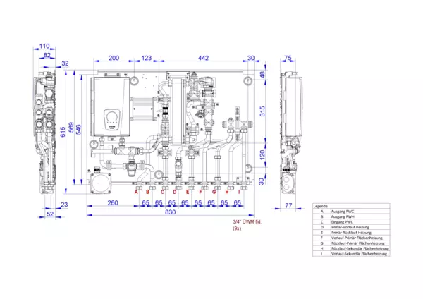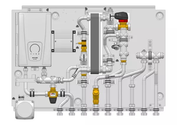 strawa Friwara WM-TWE-4L-L1-VA-HY2-BY -GB2,0,BxHxT: 830 x 615 x 111 mm, für Trinkwassererwärmung 4-Leiter mit Flächenheizung, edelstahlgelöteter PWÜ Leistungstufe 1, elektrischer Durchlauferhitzer bis 21 kW, mit Mischventil, Grundblech 2,0