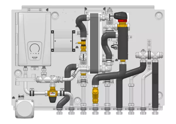 strawa Friwara WM-TWE-4L-L1-CU-HY2-BY-D -GB2,0,BxHxT: 830 x 615 x 111 mm, für Trinkwassererwärmung 4-Leiter mit Flächenheizung, kupfergelöteter PWÜ Leistungstufe 1, elektrischer Durchlauferhitzer bis 21 kW, mit Mischventil, Dämmung, Grundblech 2,0
