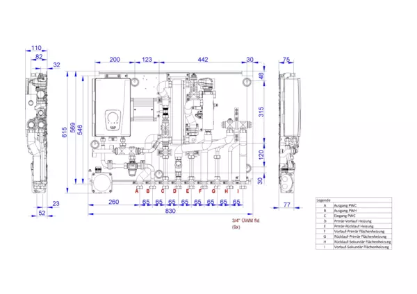 • alle Primäranschlüsse sind in DN 20 mit 3/4"-Überwurfmuttern ausgeführt.