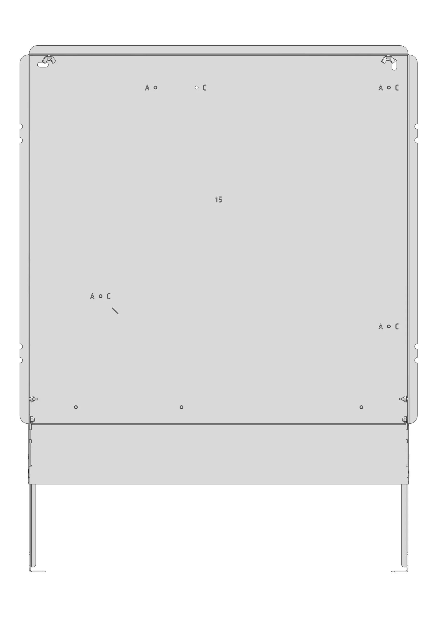 • zur Befestigung sind Montagelöcher an der Zargenrückwand und in den Zargenfüßen vorhanden