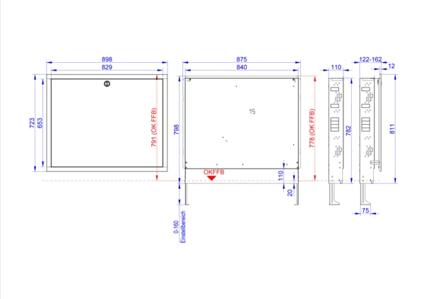 - Nischeneinbauhöhe von OKFFB 772 mm