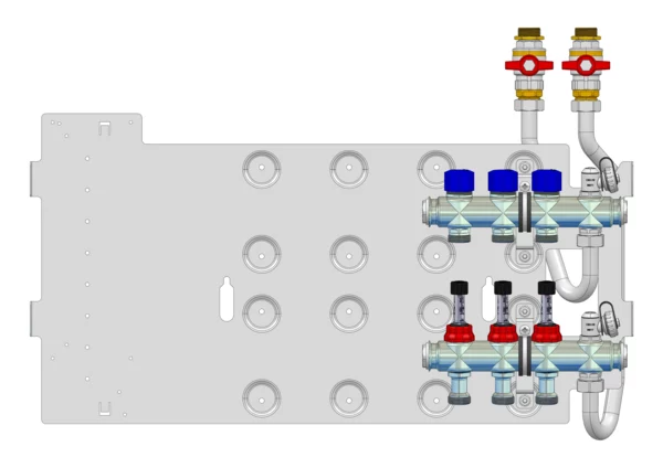 strawa Friwara WM-VT-63-GB1,5-KH 3 Hkr.,BxHxT: 691 x 472 x 105 mm, Flächenheizungsverteiler mit Durchflussanzeiger 0-3 l/min im Vorlauf und Ventiileinsätzen M30x1,5 im Rücklauf, SFEE-Ventil im Vor- und Rücklauf, Grundblech 1,5