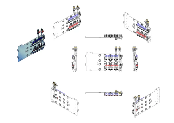 strawa Friwara WM-VT-63-GB1,5-KH 5 Hkr.,BxHxT: 691 x 472 x 105 mm, Flächenheizungsverteiler mit Durchflussanzeiger 0-3 l/min im Vorlauf und Ventiileinsätzen M30x1,5 im Rücklauf, SFEE-Ventil im Vor- und Rücklauf, Grundblech 1,5