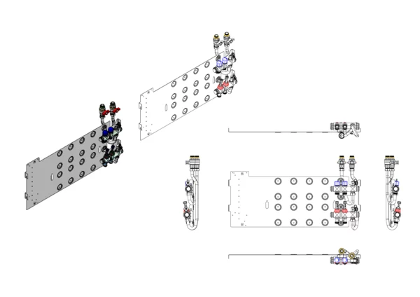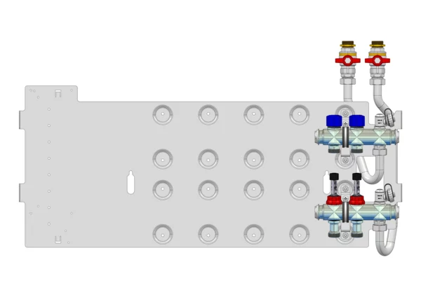 strawa Friwara WM-VT-63-GB2,0-KH 2 Hkr.,BxHxT: 841 x 472 x 105 mm, Flächenheizungsverteiler mit Durchflussanzeiger 0-3 l/min im Vorlauf und Ventiileinsätzen M30x1,5 im Rücklauf, SFEE-Ventil im Vor- und Rücklauf, Grundblech 2,0