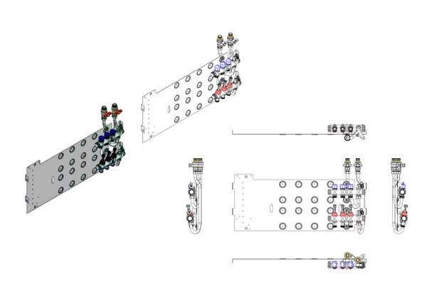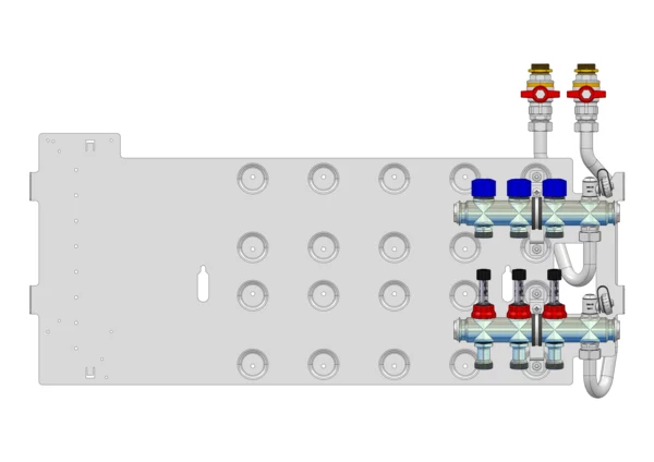 strawa Friwara WM-VT-63-GB2,0-KH 3 Hkr.,BxHxT: 841 x 472 x 105 mm, Flächenheizungsverteiler mit Durchflussanzeiger 0-3 l/min im Vorlauf und Ventiileinsätzen M30x1,5 im Rücklauf, SFEE-Ventil im Vor- und Rücklauf, Grundblech 2,0