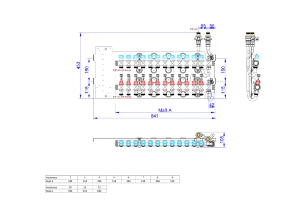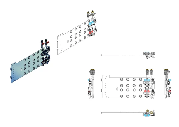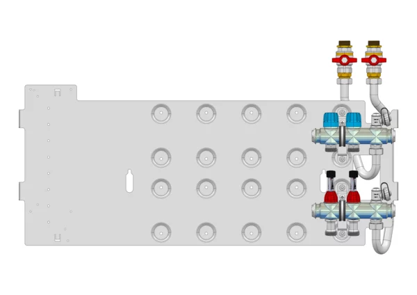 strawa Friwara WM-VT-18-GB2,0-KH 2 Hkr.,BxHxT: 841 x 472 x 105 mm, Flächenheizungsverteiler mit Durchflussanzeiger min/max im Vorlauf, Ventiileinsätzen mit Aufnahme EGO-Schnellverschluss im Rücklauf, SFEE-Ventil im Vor- und Rücklauf, Grundblech 2,0