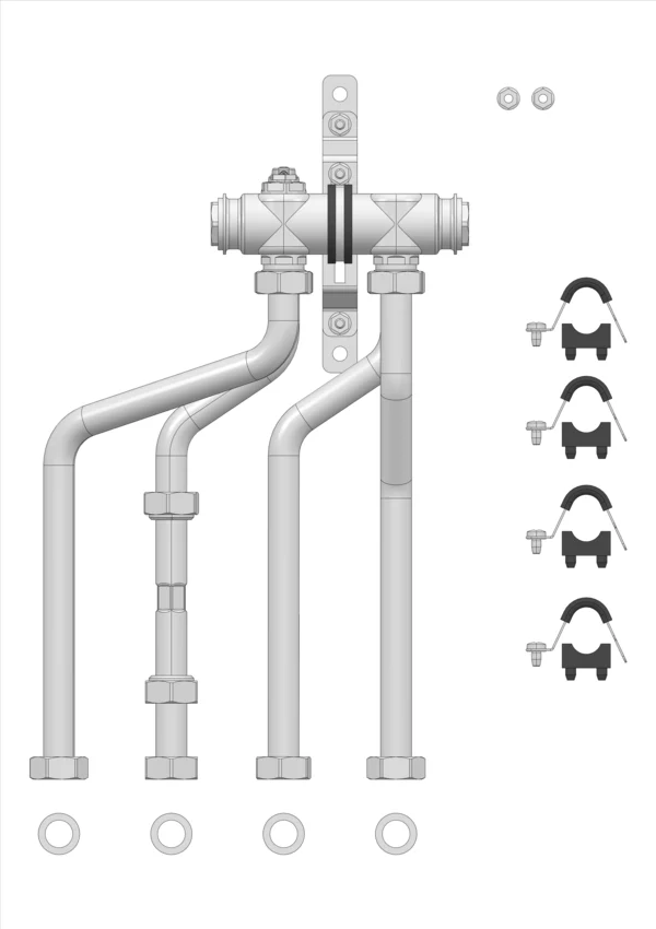 Zur Integration von Wärme- bzw. Kältezählern ist im Heizungsrücklauf ein Distanzstück vorgesehen, das den erforderlichen Einbauplatz schafft.