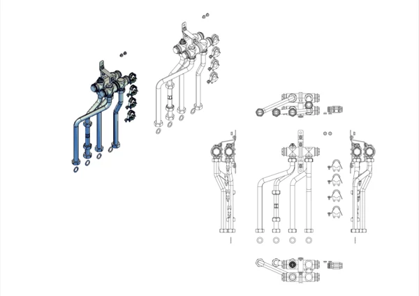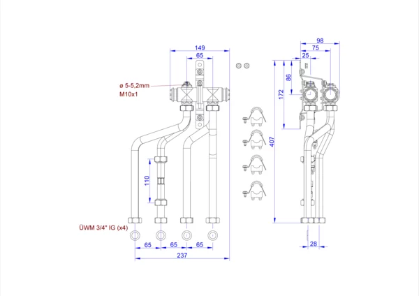 - alle Anschlüsse sind in DN 20 mit 3/4"-Überwurfmuttern ausgeführt.