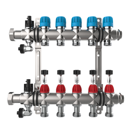 strawa FB-Anschlussverteiler e-class 18-KH25-SFEE 10 Hkr.,BxHxT: 660 x 320 x 67 mm, DFA min/max. THV mit Aufnahme für EGO-Regelantrieb mit 1" Kugelhahn und Spül-, Füll-, Entleer- und Entlüftungsventil