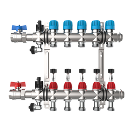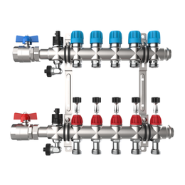 strawa FB-Anschlussverteiler e-class 18-KH25-SFEE 5 Hkr.,BxHxT: 410 x 320 x 67 mm, DFA min/max. THV mit Aufnahme für EGO-Regelantrieb mit 1" Kugelhahn und Spül-, Füll-, Entleer- und Entlüftungsventil