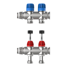 strawa FB-Anschlussverteiler e-class 18-KH25-SFEE 2 Hkr.,BxHxT: 260 x 320 x 67 mm, DFA min/max. THV mit Aufnahme für EGO-Regelantrieb mit 1" Kugelhahn und Spül-, Füll-, Entleer- und Entlüftungsventil