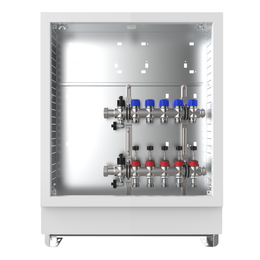 strawa Comfort Anschlussstation FBH-63-X-C69 5 Hkr.,BxHxT: 600 x 775 x 122 mm, ohne Anschlussgarnitur, Verteiler mit DFA 0-3 l/min + THV M30x1,5, Comfort-UP-Schrank mit Frontblende in RAL 9016