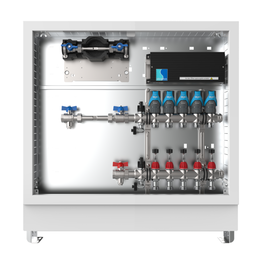 strawa Comfort Anschlussstation FBH-18-H-W1-WMZ-C80-EGO 14 Hkr.,BxHxT: 1198x775x92 mm, horiz. AG. m. WMZ, Verteiler m. DFA min/max + THV, m. vorm. EGO-Regelantr. u. Klemml. m. Vorverdr., Wasserzählerstr. TW kalt, CUP-Schrank m. Frontbl. in RAL 9016