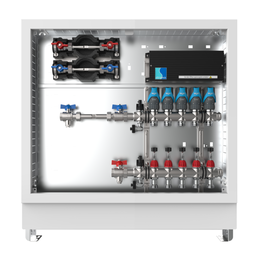 strawa Comfort Anschlussstation FBH-18-H-W2-WMZ-C80-EGO 14 Hkr.,BxHxT: 1198x775x92 mm, horiz. AG. m. WMZ, Verteiler m. DFA min/max + THV, m. vorm. EGO-Regelantr. u. Klemml. m. Vorverdr., Wasserzählerstr. TW kalt, CUP-Schrank m. Frontbl. in RAL 9016