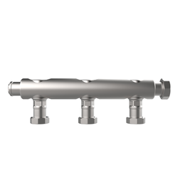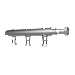 strawa Trinkwasserverteiler e-class HEG 25 4 Abg.,BxHxT: 514 x 114 x 52 mm, TW-Erwärmung max. 32 l/min, Festwertregelung 20-50°C, Verteiler DFA 0-3 l/min + THV 30x1,5, kupfergel. PWT, UP-Schrank mit Frontblende RAL 9016