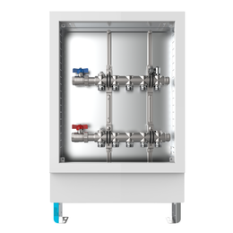 strawa HK-Anschlussstation H 52h-W1-WMZ 2 Hkr.,BxHxT: 460 x 725 x 122 mm, horiz. AG m. WMZ, Verteiler ohne Einbauten, Wasserzählerstr. TW kalt, Standard-UP-Schrank mit Frontblende in RAL 9016