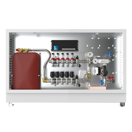 strawa Comfort-Mischstation FBM-S10-63-H-C69 5 Hkr.,BxHxT: 1200x775x122 mm, Systemtr. m. Mischg. m 3P SM + Pumpe, horz. AG o. WMZ, Verteiler mit DFA 0-3 l/min + THV M30x1,5, Comfort-UP-Schrank m. Frontbl. RAL 9016