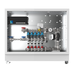 strawa Comfort Mischstation FBM-18-H-WMZ-C69 5 Hkr.,BxHxT: 900x775x122 mm, Mischg. m 3P SM mit Pumpe, horz. AG m. WMZ, Verteiler m. DFA min/max + THV für EGO, Comfort-UP-Schrank m. Frontbl. RAL 9016