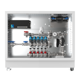 strawa Comfort Regelstation FBR-18-H-W1-WMZ-C69-EGO 6 Hkr.,BxHxT: 1050x775x122 mm, Festwert 20-50°C m. Pumpe, hor. AG m. WMZ, Verteil m. DFA min/max+THV f. EGO, vorm. EGO-Regel.+Klemml. m. Vorverdr., WZ-Strecke TW kalt, CUP-Schrank m. Frontbl. RAL9016