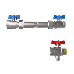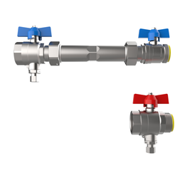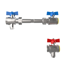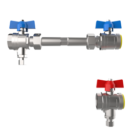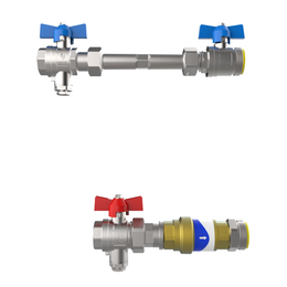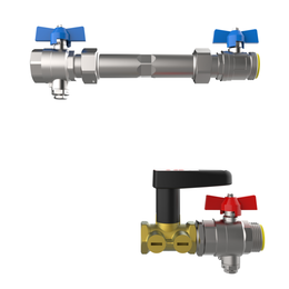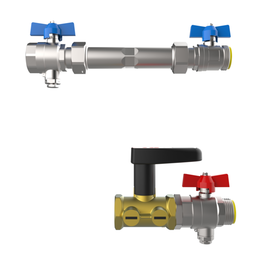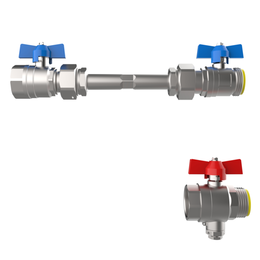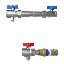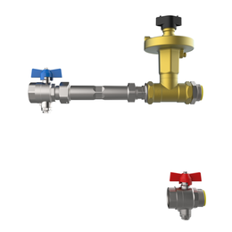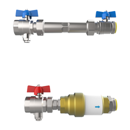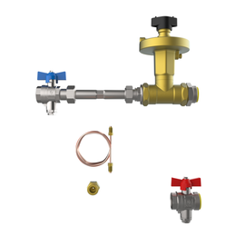 strawa Anschlussgarnitur e-class AG 1'' WMZ-2F-VSB20,BxHxT: 264 x 288 x 43 mm, m WMZ, Primäranschl horiz., mit Distanzstück 1" 130mm, 1" KH m Fühlereinbaustück 5-5,2mm M10x1 im VL u RL, Volumenstrombrgrenzer Autofow DN20 0,2-1,6m³/h im VL