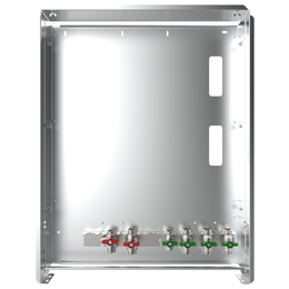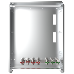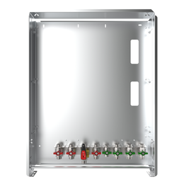 strawa FBH-Anschlussverteiler Friwara-M5-W-4L/WS-63 8 Hkr,BxHxT: 495 x 284 x 71 mm, Module 5 Anschlussverteiler mit integr. DFA 0-3 l/min im VL und THV M30x1,5 im RL, Spül-, Füll- und Entleer- und Entlüftungsventil im VL und RL, Primär 1"ÜW seitlich