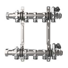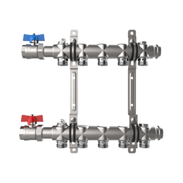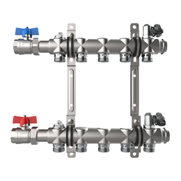 strawa HK-Anschlussverteiler e-class 52 mit SFE, mit 1''KH 8 Hkr.,BxHxT: 510 x 320 x 67 mm, 1" Kugelhahn, Spül-, Füll- und Entleerventil und Entlüftungsventil im VL und RL, Doppelwandhalter 200 mm mit Schrauben u. Dübeln