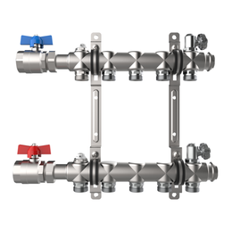 strawa HK-Anschlussverteiler e-class 52 mit SFE, mit 1''KH 4 Hkr.,BxHxT: 310 x 320 x 67 mm, 1" Kugelhahn, Spül-, Füll- und Entleerventil und Entlüftungsventil im VL und RL, Doppelwandhalter 200 mm mit Schrauben u. Dübeln