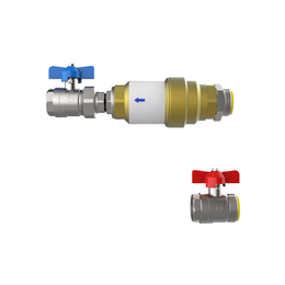 strawa Anschlussgarnitur e-class AG 1''-VSB20,BxHxT: 190 x 271 x 43 mm, ohne WMZ, Primäranschluss horizontal, mit 2x 1" Kugelhähnen und Volumenstrombegrenzer Caleffi Autoflow DN 20