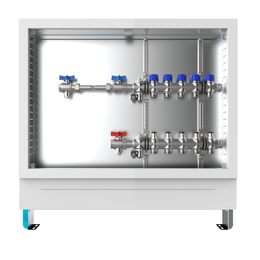 strawa FB-Anschlussstation H 53h-WMZ 6 Hkr.,BxHxT: 750 x 725 x 92 mm, horiz. AG m. WMZ, Verteiler mit Regulierventil + THV M30x1,5, Standard-UP-Schrank mit Frontblende in RAL 9016