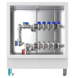 strawa FB-Anschlussstation H 63-WMZ 5 Hkr.,BxHxT: 600 x 725 x 122 mm, vert. AG. m. WMZ, Verteiler mit DFA 0-3 l/min + THV M30x1,5, Standard-UP-Schrank mit Frontblende in RAL 9016
