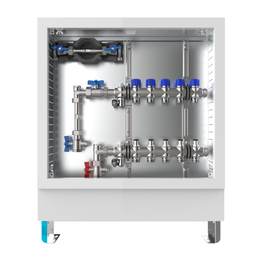 strawa FB-Anschlussstation H 63-W1-WMZ 7 Hkr.,BxHxT: 750 x 725 x 122 mm, vert. AG. m. WMZ, Verteiler m. DFA 0-3 l/min + THV M30x1,5, Wasserzählerstr. TW kalt, Standard-Schrank m. Frontbl. in RAL 9016