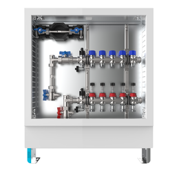 strawa FB-Anschlussstation H 63-W1-WMZ-AP-X 10 Hkr.,BxHxT: 1032 x 620 x 125 mm, vert. AG. m. WMZ, Verteiler mit DFA 0-3 l/min + THV M30x1,5, vorm. Stellantr. + Klemml. m. Vorverdraht., Wasserzählerstr. TW kalt, Standard-AP-Schrank in RAL 9016