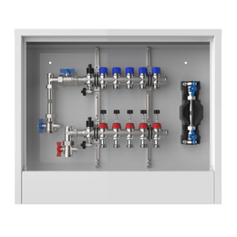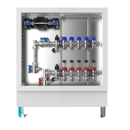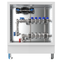 strawa FB-Anschlussstation H 63-W1-WMZ 8 Hkr.,BxHxT: 750 x 725 x 122 mm, vert. AG. m. WMZ, Verteiler m. DFA 0-3 l/min + THV M30x1,5, Wasserzählerstr. TW kalt, Standard-Schrank m. Frontbl. in RAL 9016