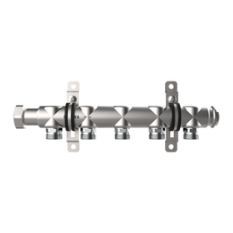 strawa Trinkwasserverteiler e-class HEG 25 5 Abg.,BxHxT: 639 x 114 x 52 mm, TW-Erwärmung max. 32 l/min, Festwertregelung 20-50°C, Verteiler DFA 0-3 l/min + THV 30x1,5, kupfergel. PWT, UP-Schrank mit Frontblende RAL 9016