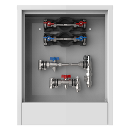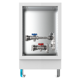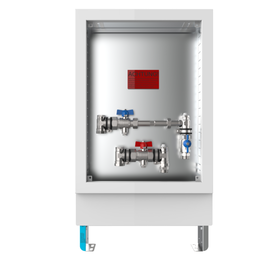 strawa Anschlussstation AS 16-W2-WMZ-AP,BxHxT: 496 x 620 x 125 mm, 1 Wohnungsanschluss, verti. AG m. WMZ, mit Regulierventil, mit Wasserzählerverrohrung Trinkwasser kalt und warm, Standard-AP-Schrank in RAL 9016