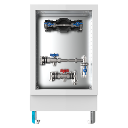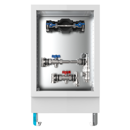 strawa Anschlussstation AS 16-W1-WMZ-AP,BxHxT: 496 x 620 x 125 mm, 1 Wohnungsanschluss, verti. AG m. WMZ, mit Regulierventil, mit Wasserzählerverrohrung Trinkwasser kalt, Standard-AP-Schrank in RAL 9016