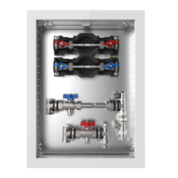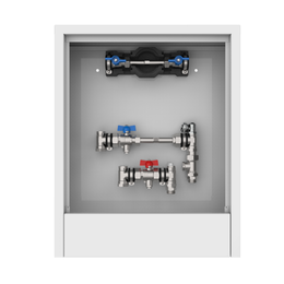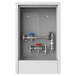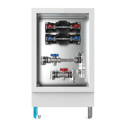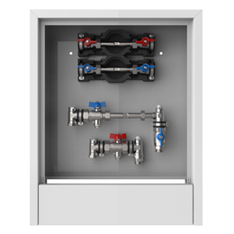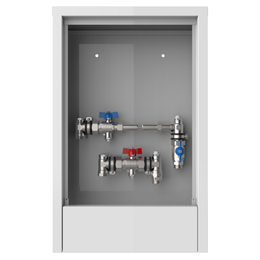 strawa Anschlussstation AS 16-WMZ-ST,BxHxT: 410 x 725 x 92 mm, 1 Wohnungsanschluss, verti. AG m. WMZ, mit Regulierventil, Standard-UP-Schrank mit Frontblende in RAL 9016
