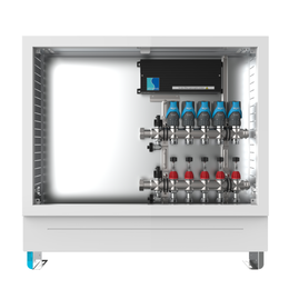 strawa Comfort Anschlussstation FBH-18-X-C69-EGO 7 Hkr.,BxHxT: 750 x 775 x 122 mm, ohne Anschlussgarnitur, Verteiler mit DFA min/max + THV, mit vorm. EGO-Regelantrieben u. Klemmleiste mit Vorverdraht., Comfort-UP-Schrank mit Frontbl. in RAL 9016