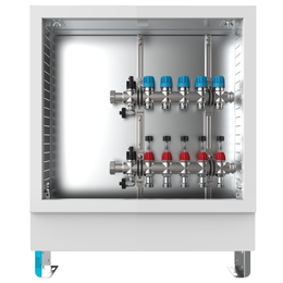 strawa Comfort Anschlussstation FBH-18-X-C69-EGO 4 Hkr.,BxHxT: 600 x 775 x 122 mm, ohne Anschlussgarnitur, Verteiler mit DFA min/max + THV, mit vorm. EGO-Regelantrieben u. Klemmleiste mit Vorverdraht., Comfort-UP-Schrank mit Frontbl. in RAL 9016